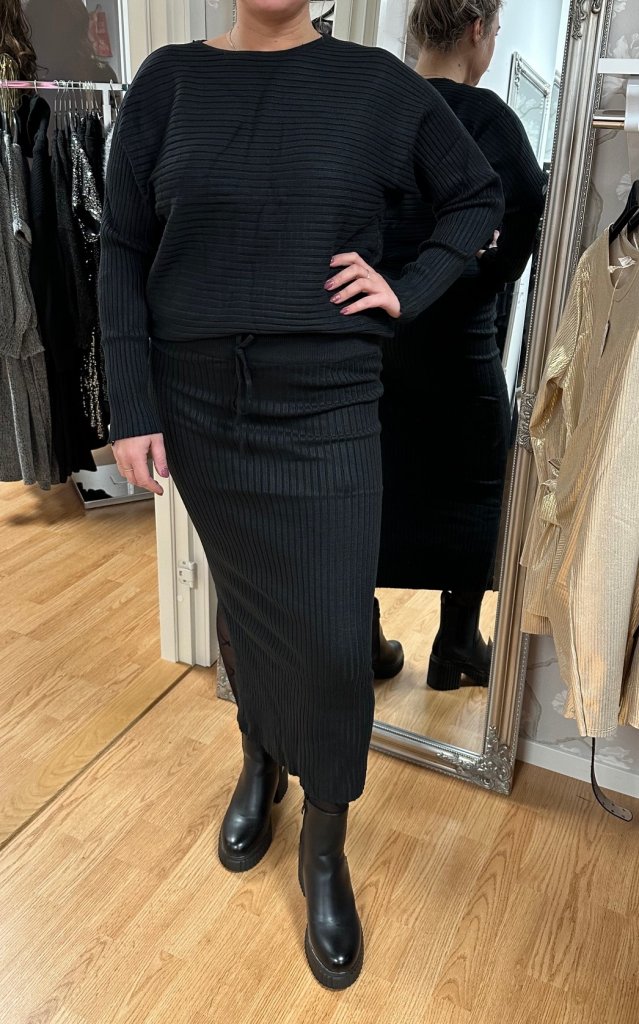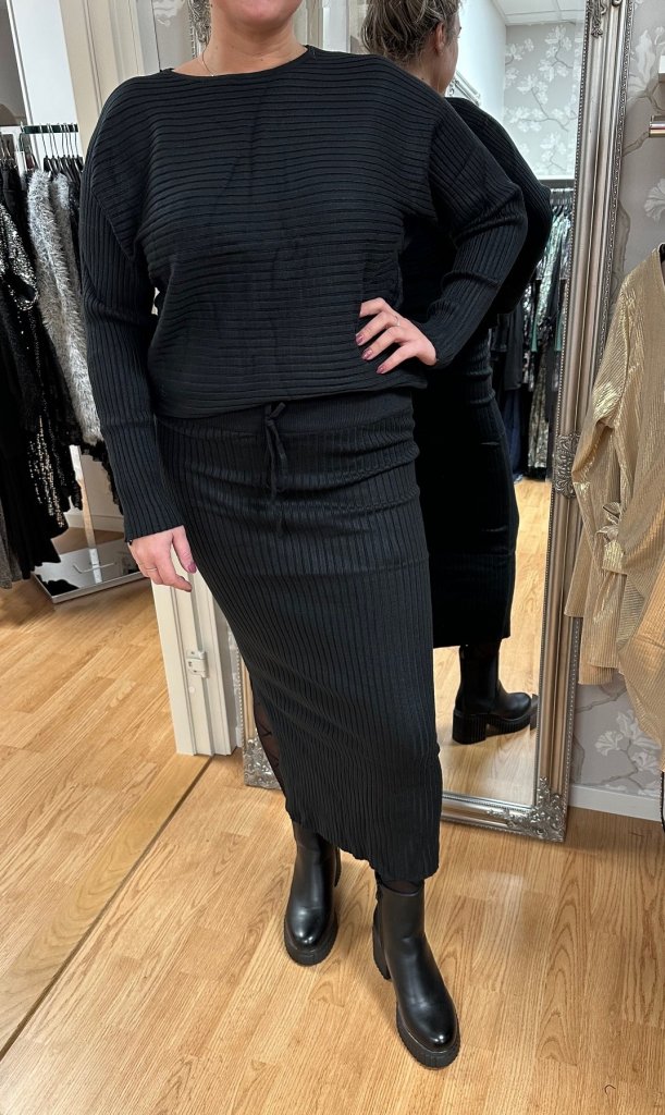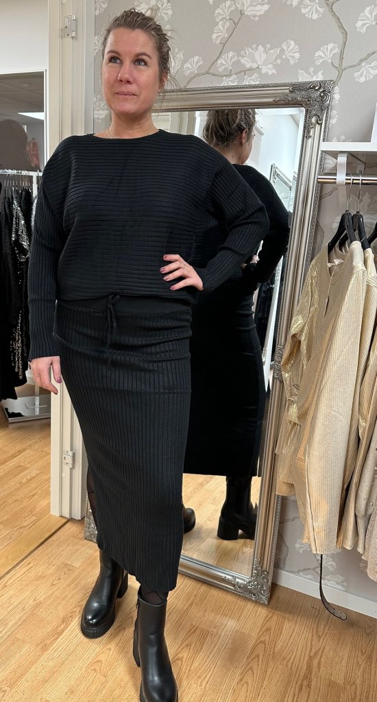 Iris - Set Ribbad Tröja & kjol - Svart- Nyhet