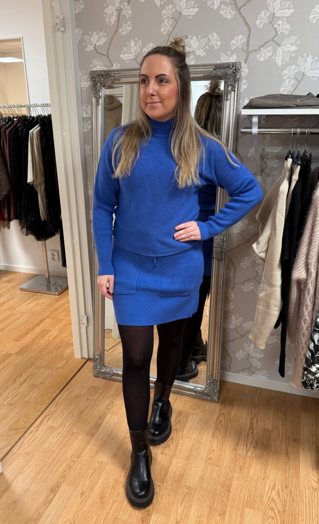 Sissi - Set Ribbad Tröja & kjol - Blå - Nyhet