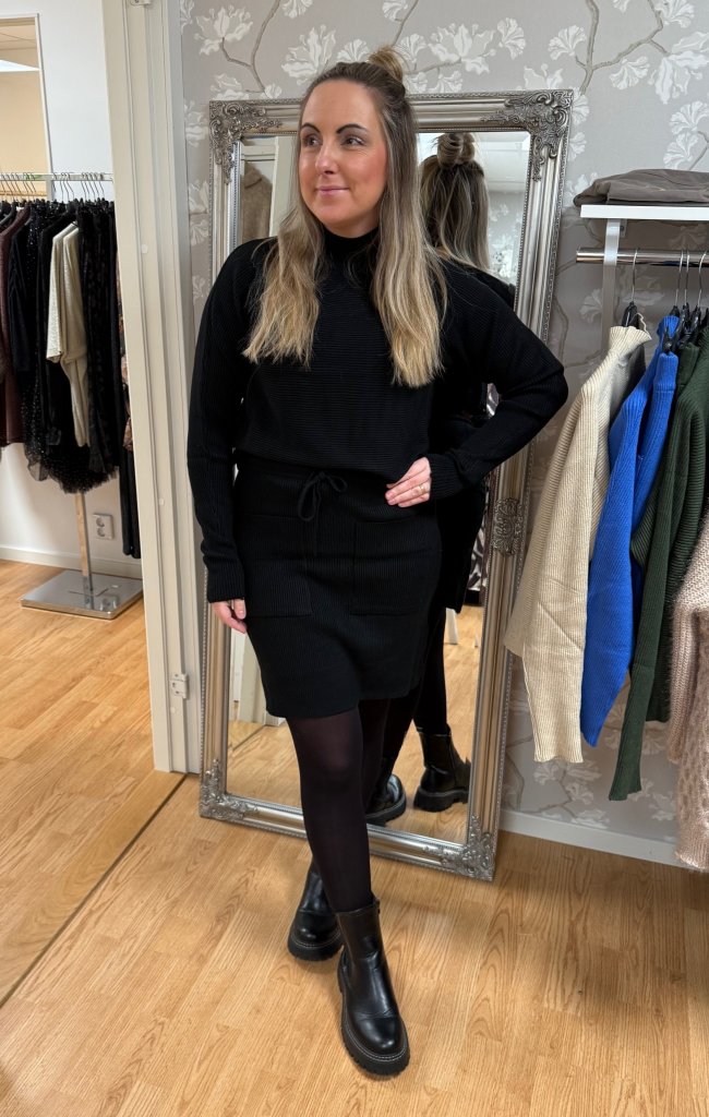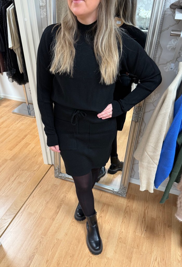 Sissi - Set Ribbad Tröja & kjol - Svart - Nyhet