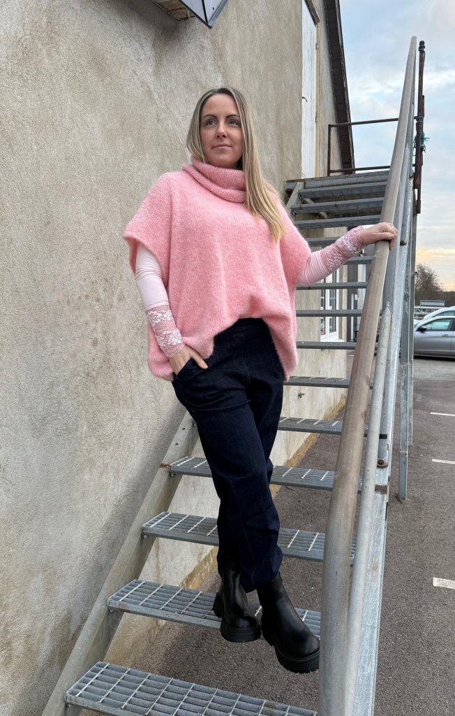 Leona är en ärmlös stickad tröja med generös polokrage och avslappnad passform. En perfekt layering-piece som ger både värme och stil – funkar lika bra över en skjorta som ensam.