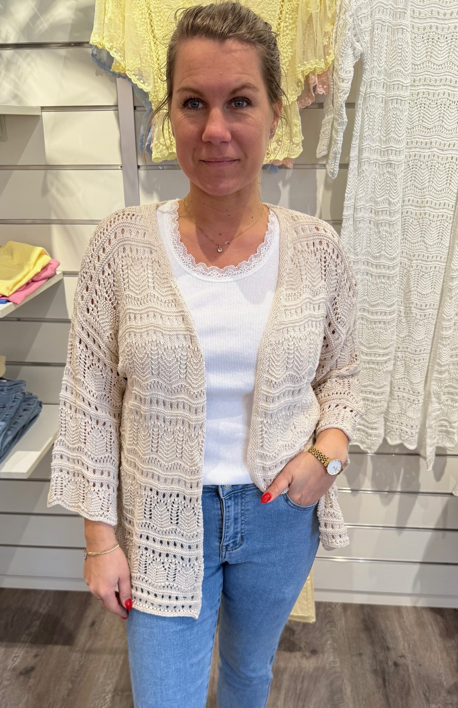 Hailey - Kort virkad Kofta - Beige