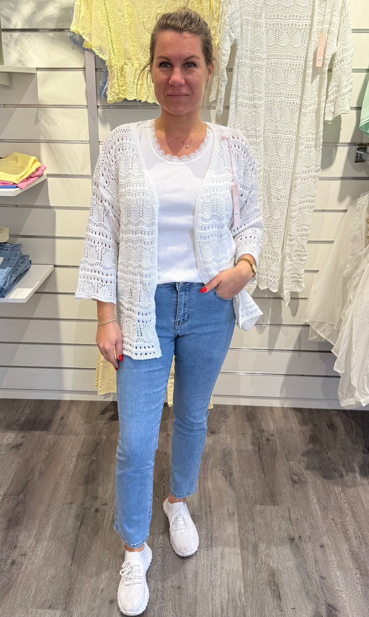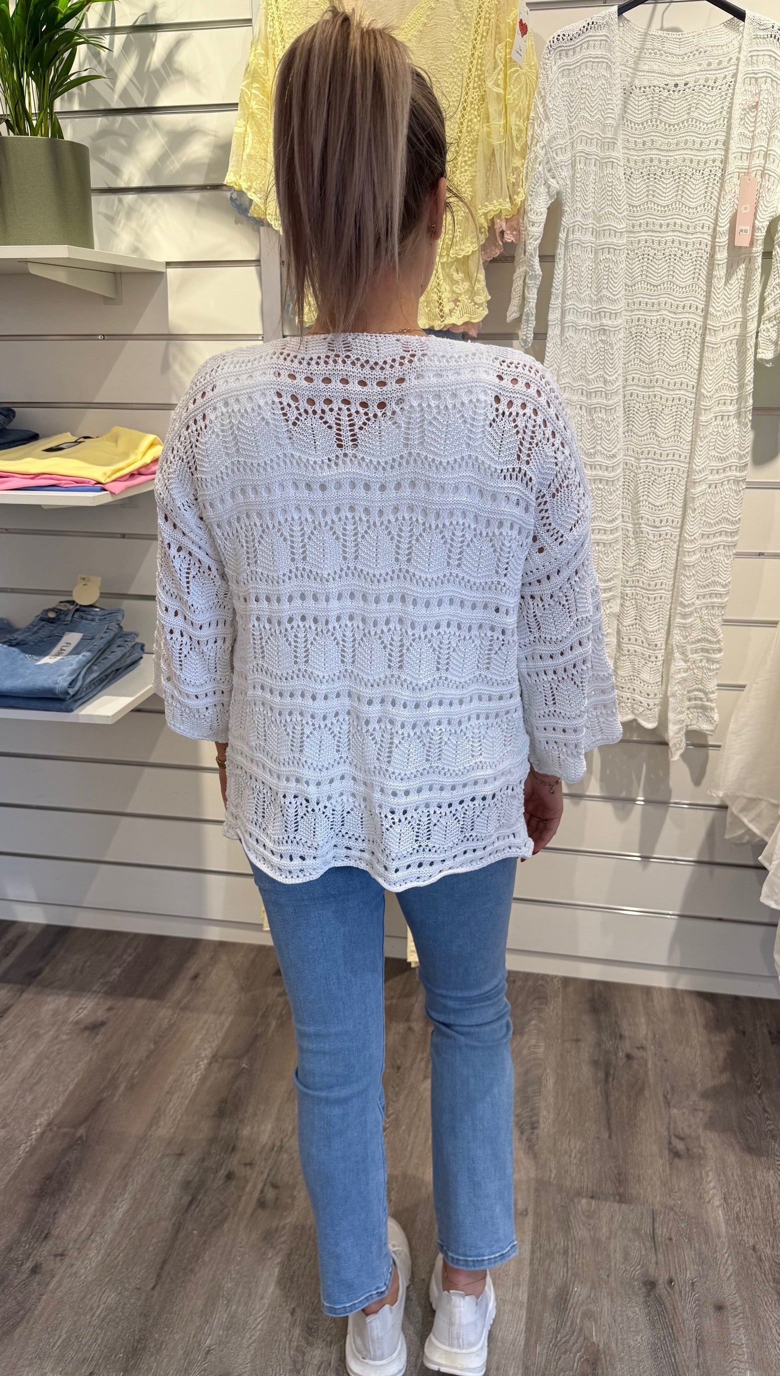 Hailey - Kort virkad Kofta - Vit