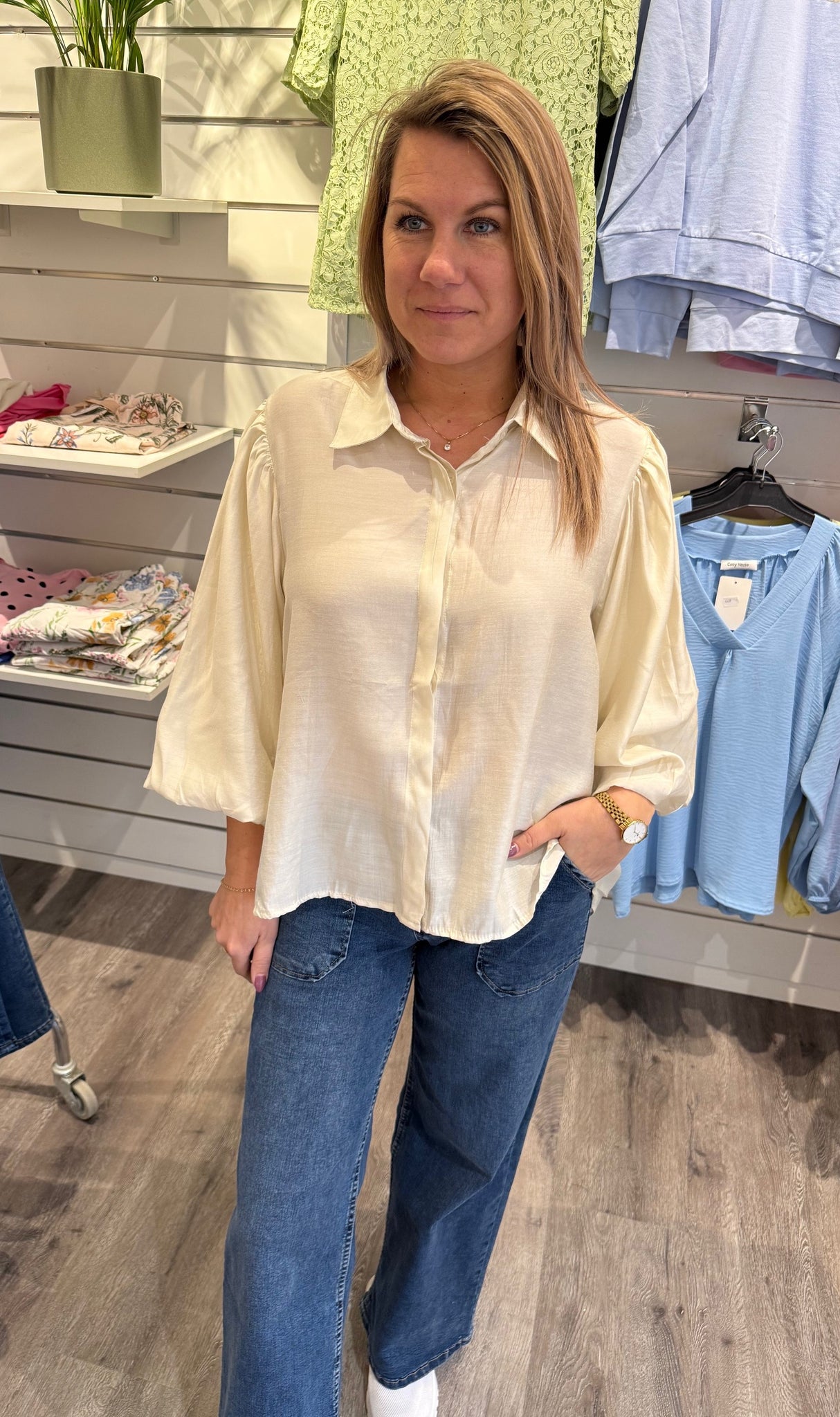Kerstin - Blus med ballongarm - Beige