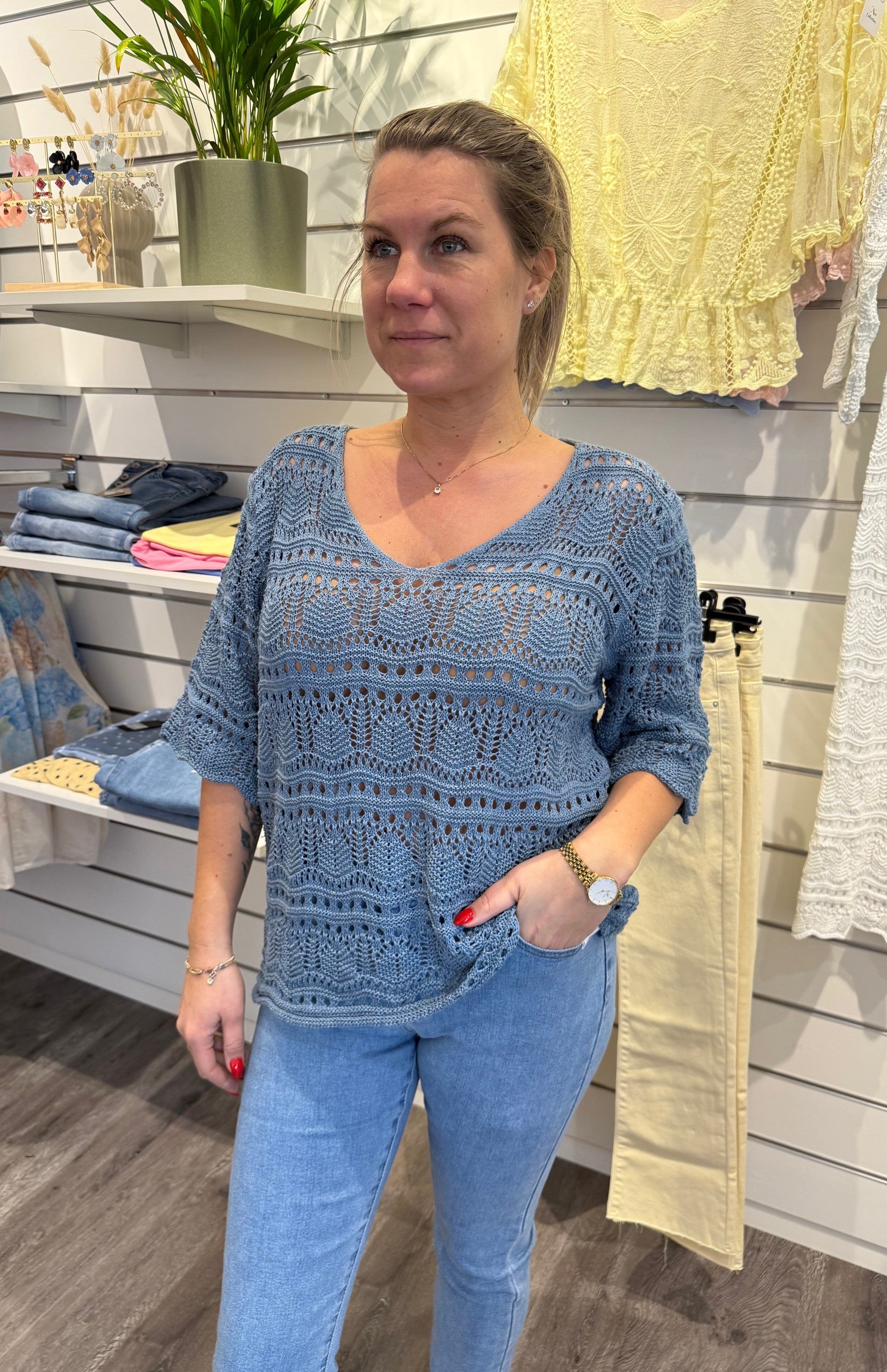 Paula - Virkad Topp - Beige